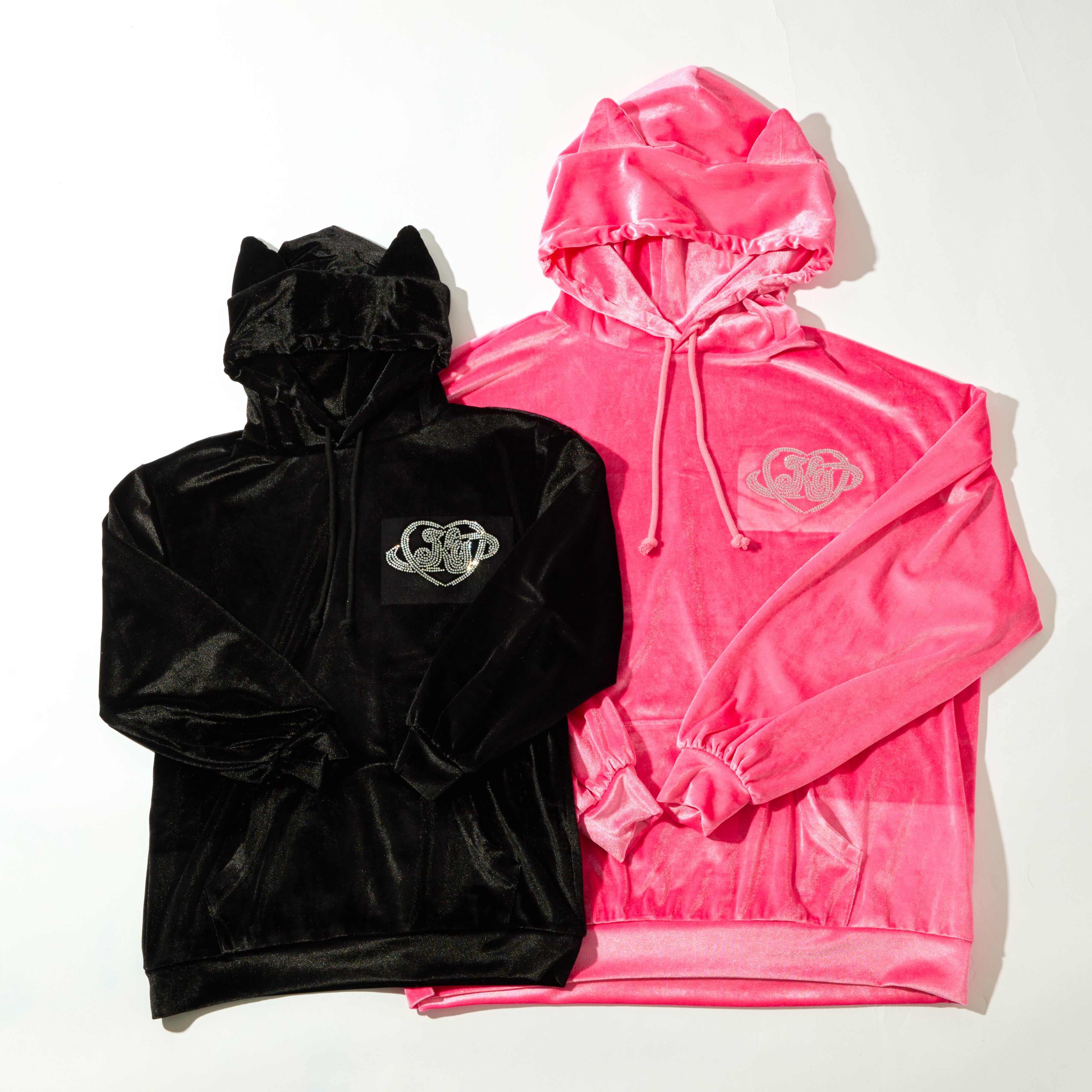 KOGYARU ワンマンロゴのラインストーン入り+フードには猫耳もつけたのが盛りポイント😏💕
