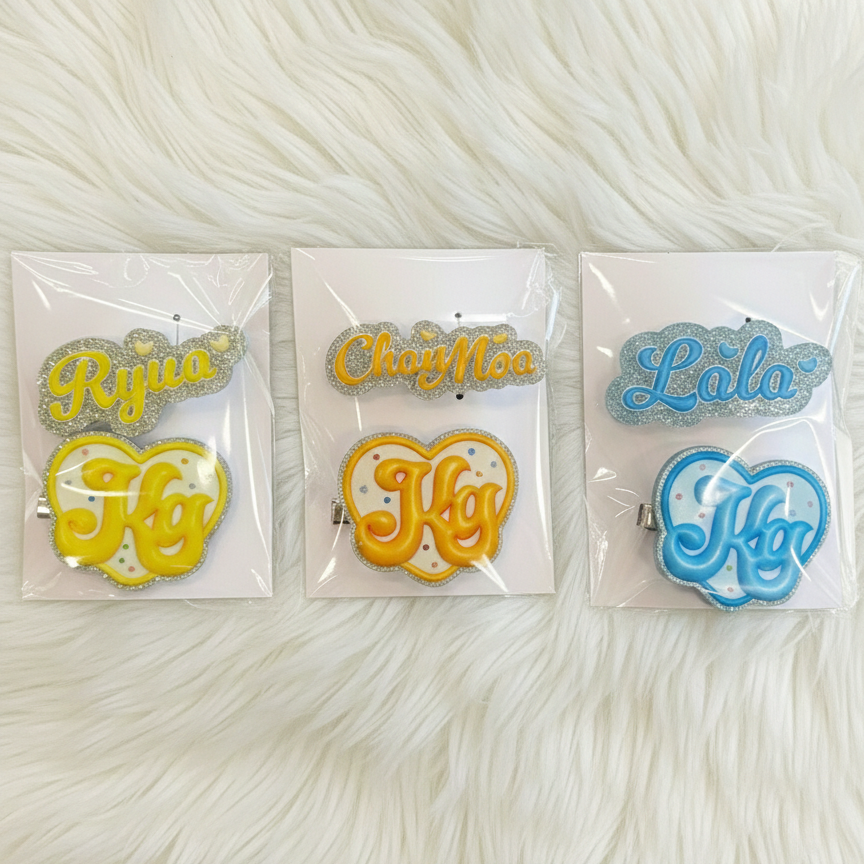 卒メンの名前+Kgロゴが2つで1つSETになったヘアピン🩵🧡💛